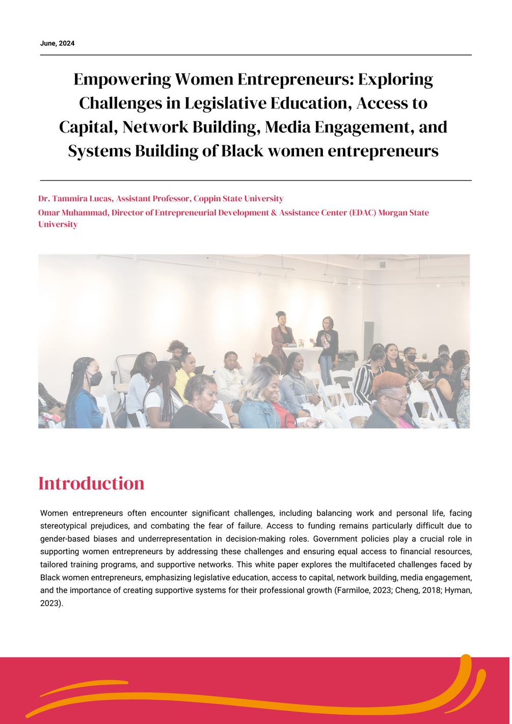 Empowering Women Entrepreneurs: Exploring Challenges in Legislative Education, Access to Capital, Network Building, Media Engagement, and Systems Building of Black women entrepreneurs